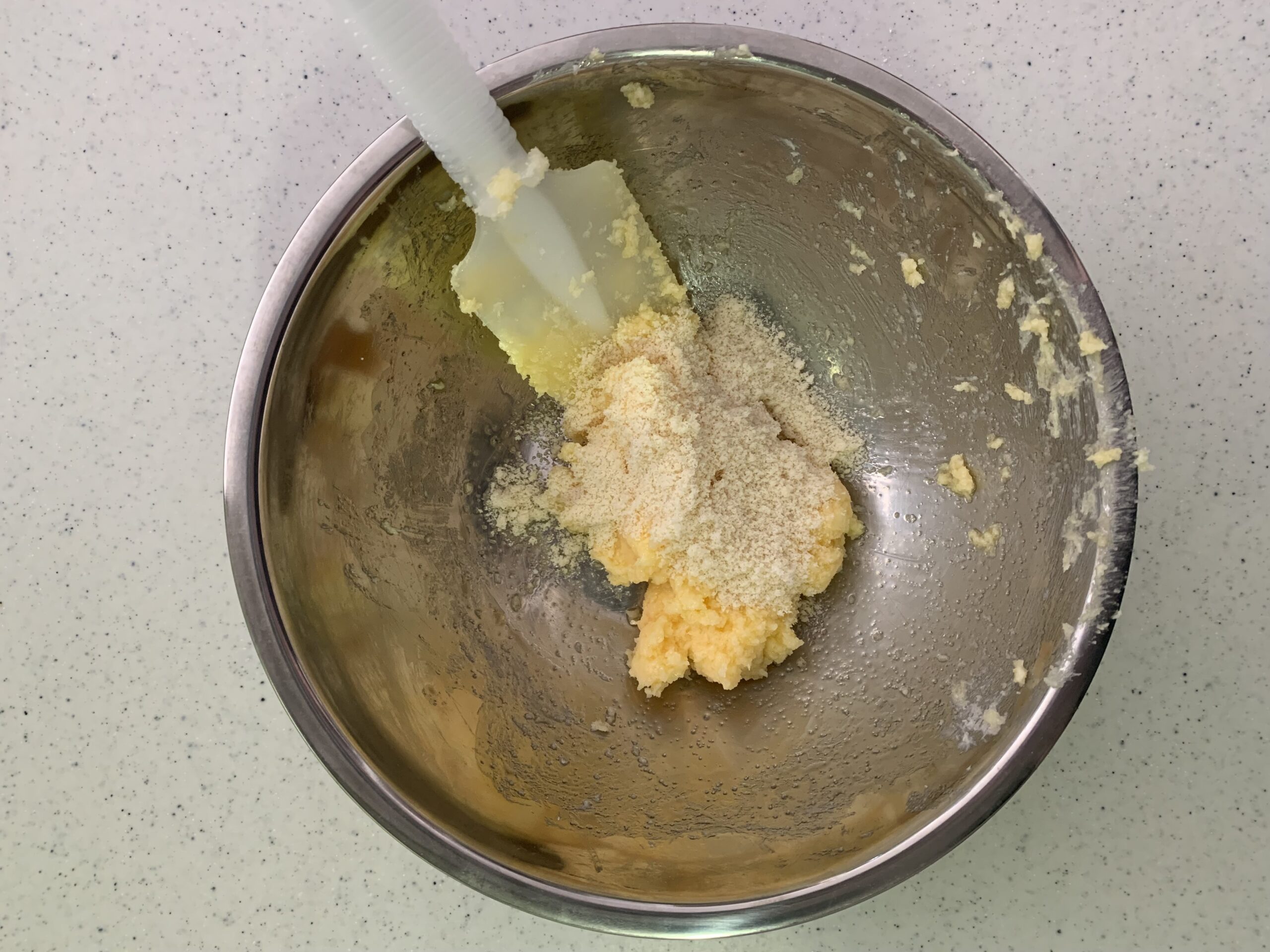 ④ | ![]() アーモンドプードルを加える アーモンドプードルを加えて混ぜる。 |