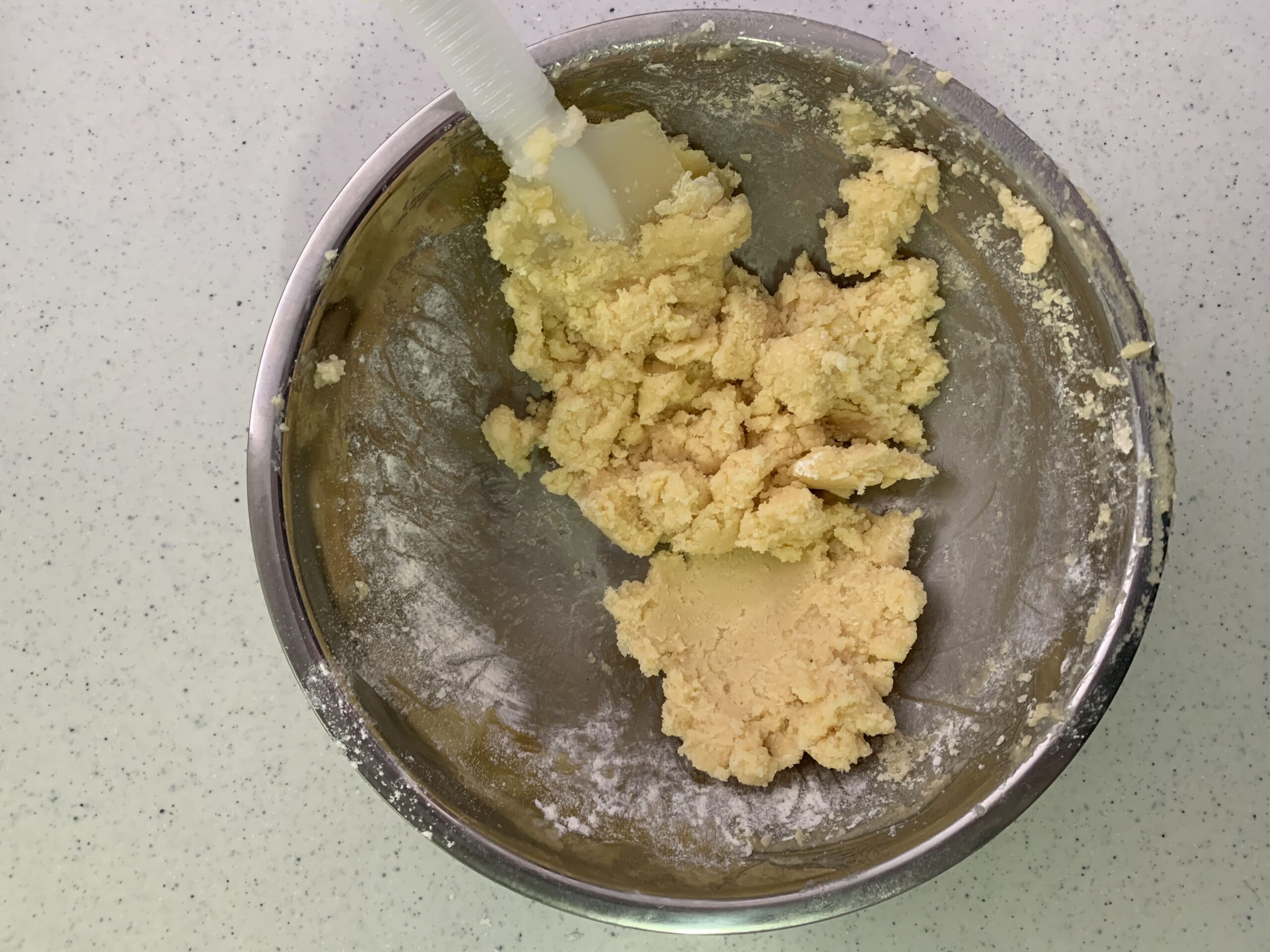 先述の通り、生地を混ぜている間はまとまるのか心配でどうしても練りたくなりますが、根気よく「1」の字をイメージしながら切るように混ぜる動作を続けましょう。