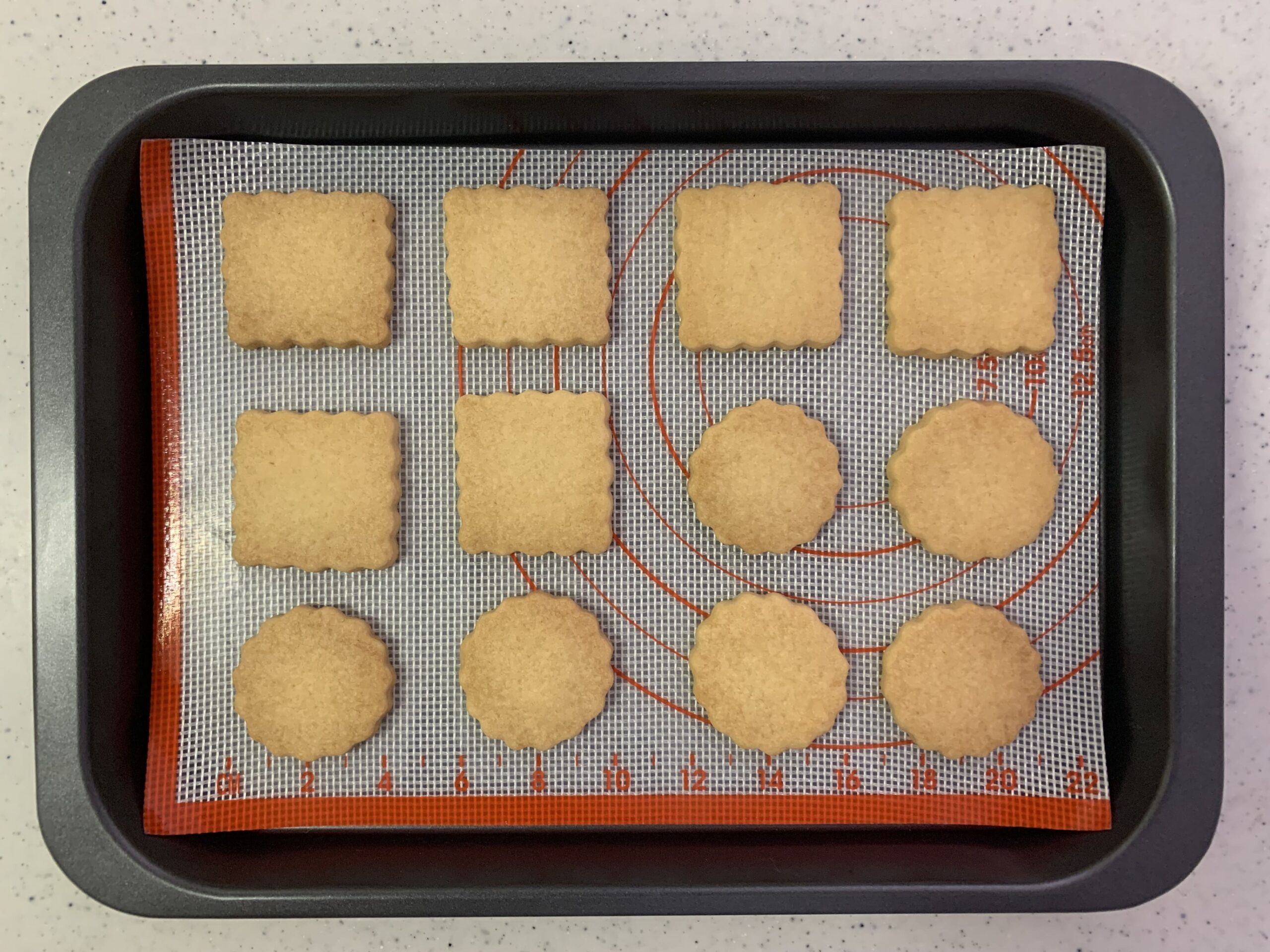 - クッキーのサイズや厚みが型抜き後の生の生地と、焼き上がり後でほとんど変っていない。
